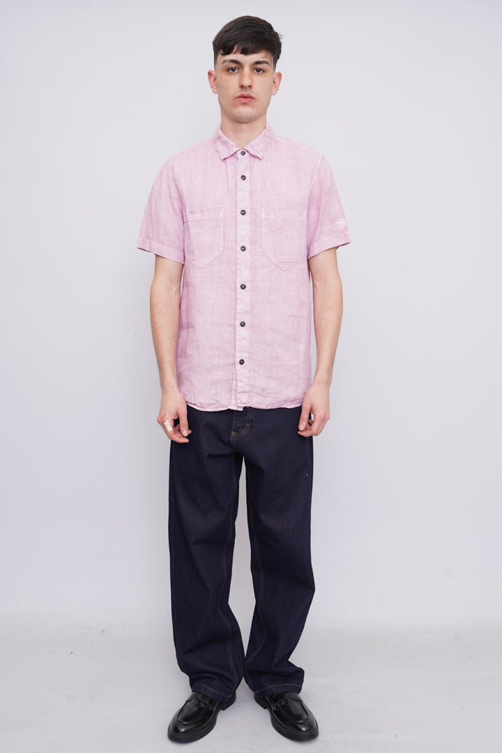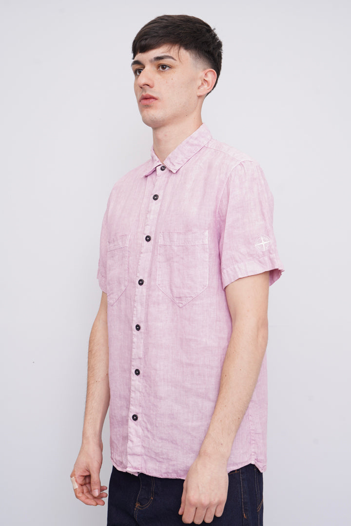 CAMISA, COLOR ROSADO, MARCA STONE ISLAND, TALLA L, DE LINO, TEMP. PRIMAVERA-VERANO, 43CM (ANCHO DE HOMBROS) X 56CM (ANCHO DEL PRODUCTO) X 77CM (LARGO DEL PRODUCTO), ÓPTIMAS CONDICIONES.