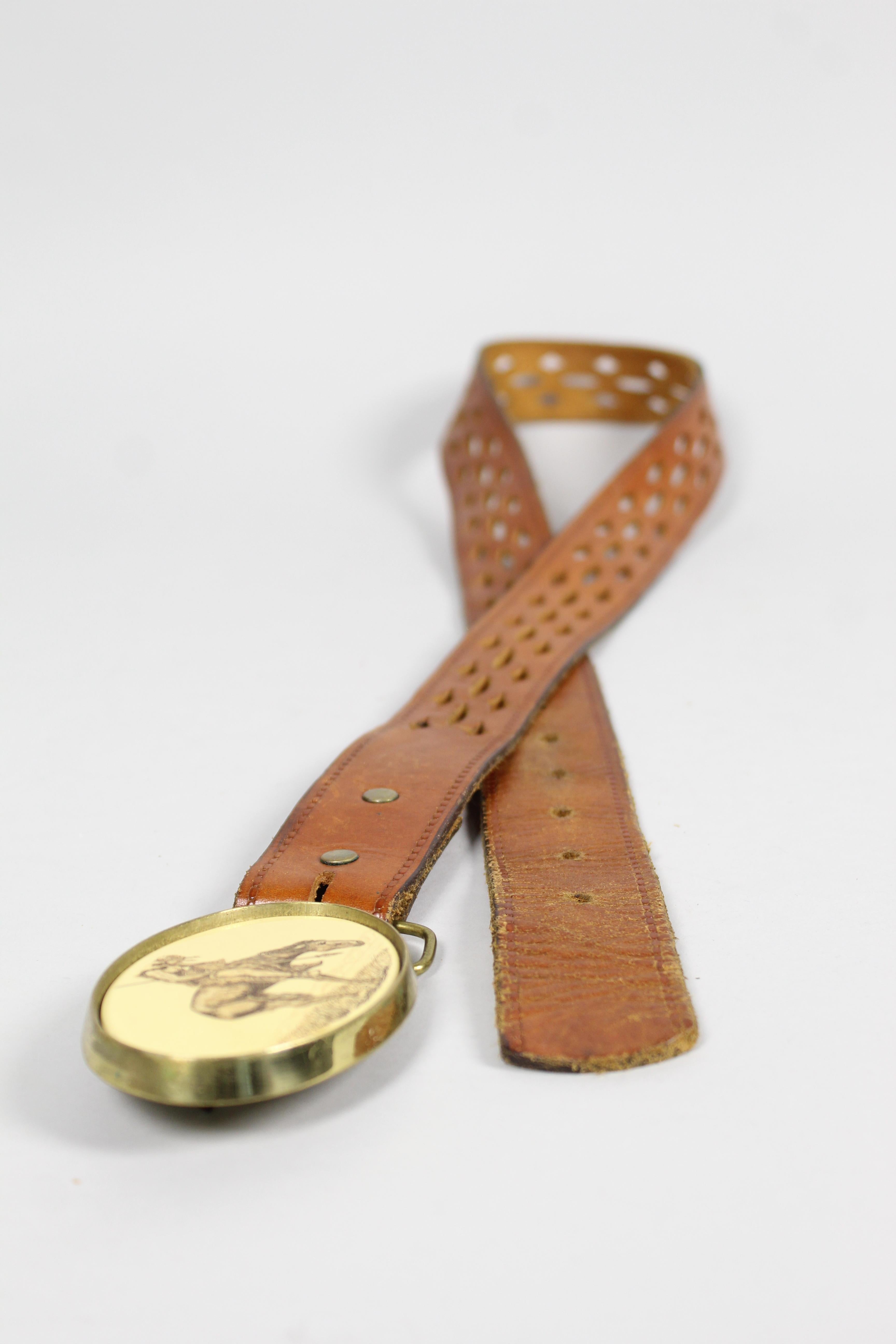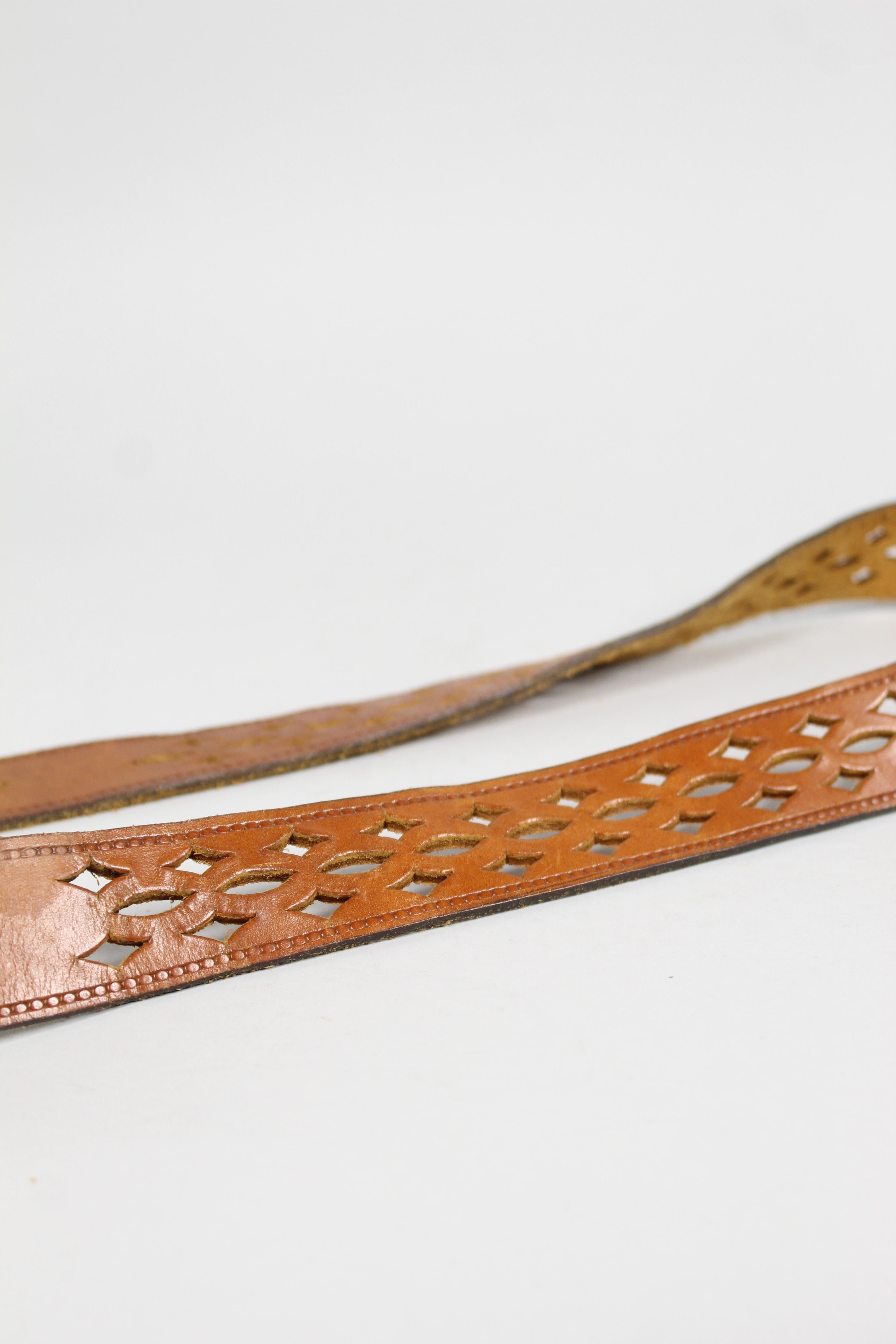 CINTURÓN, COLOR CAFÉ, MARCA NOSTALGIC, TALLA TU, DE CUERO, TEMP. PRIMAVERA-VERANO, 102CM (LARGO), PRODUCTO CON DESGASTE.