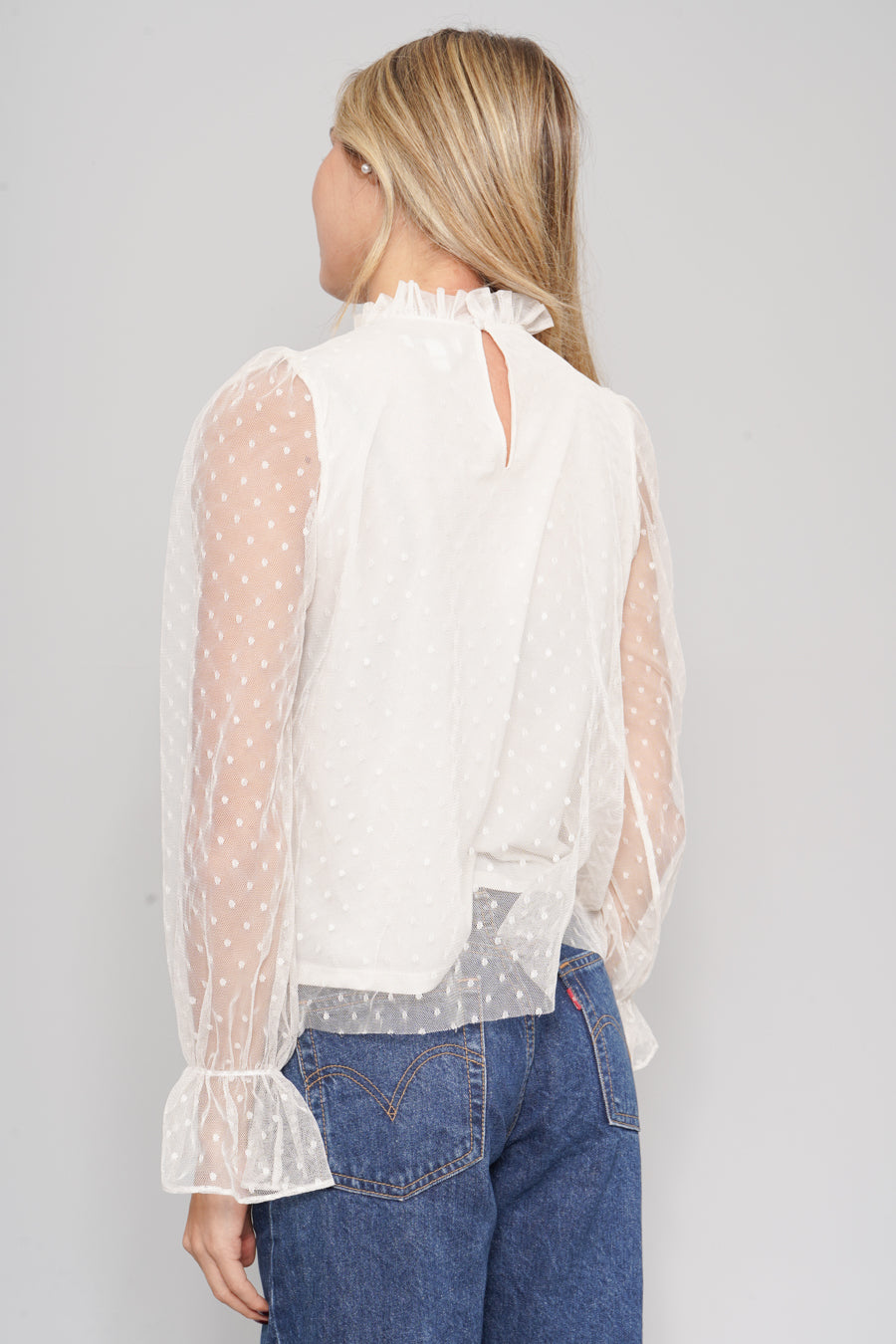 BLUSA, COLOR CREMA, MARCA EXPRESS, TALLA XS, DE POLIÉSTER, TEMP. PRIMAVERA-VERANO, 30CM (ANCHO DE HOMBROS) X 46CM (ANCHO DEL PRODUCTO) X 57CM (LARGO DEL PRODUCTO), ÓPTIMAS CONDICIONES.