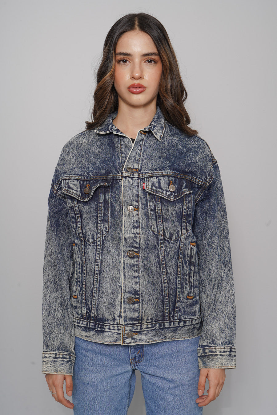 JACKET, COLOR AZUL, MARCA LEVI´S, TALLA L, DE ALGODÓN, TEMP. OTOÑO-INVIERNO, 48CM (ANCHO DEL PECHO) X 48CM (ANCHO DE HOMBROS) X 62.5CM (LARGO), PRODUCTO CON DESGASTE.