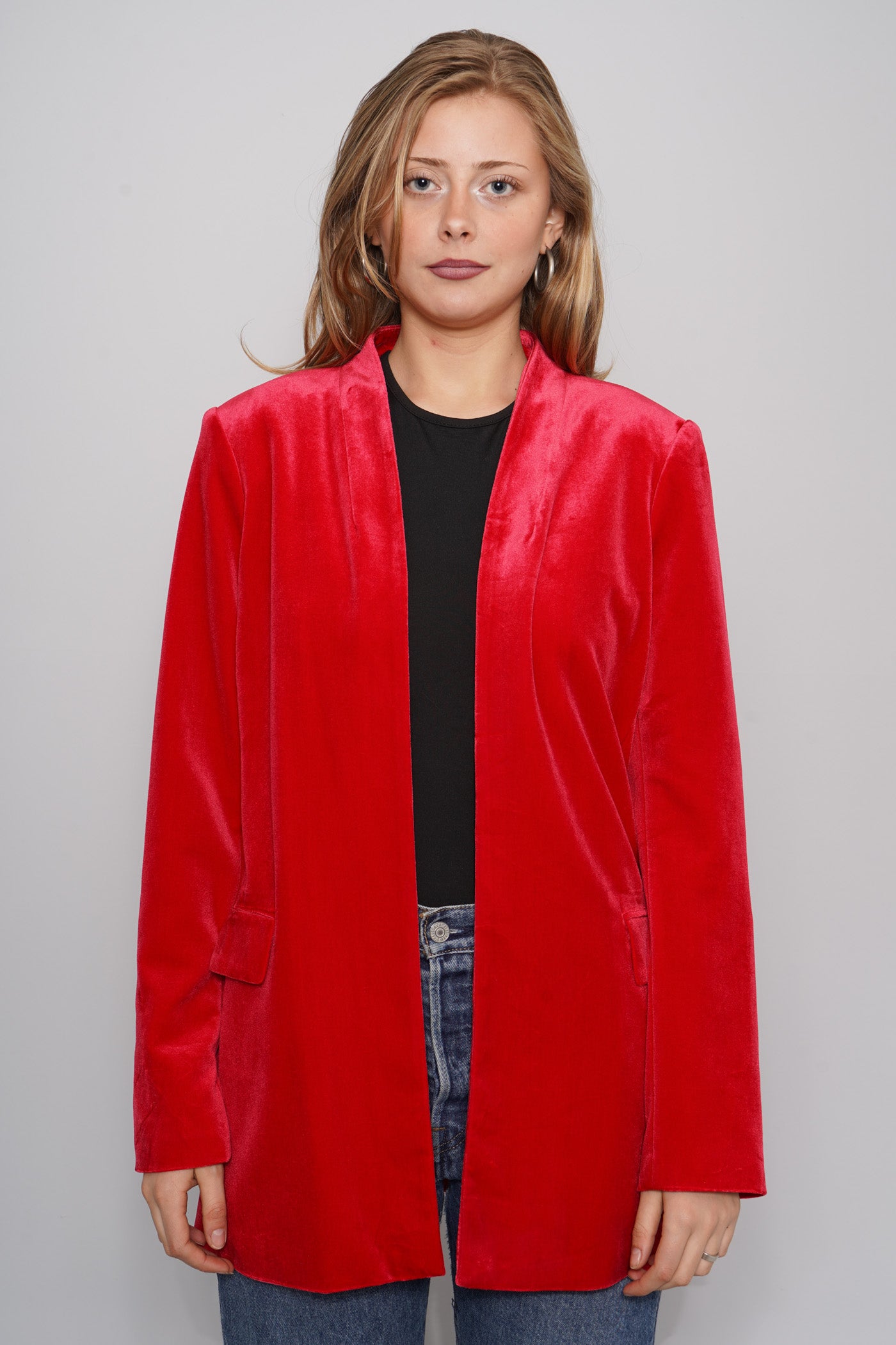 BLAZER, COLOR ROJO, MARCA CALVIN KLEIN, TALLA 12, DE POLIÉSTER, TEMP. OTOÑO-INVIERNO, 50CM (ANCHO DEL PECHO) X 42CM (ANCHO DE HOMBROS) X 76CM (LARGO), ÓPTIMAS CONDICIONES.