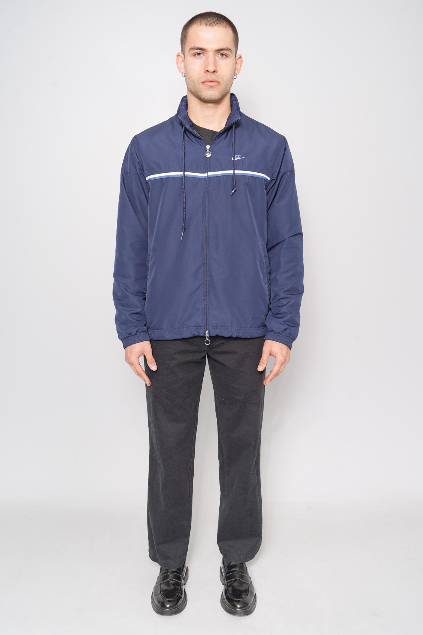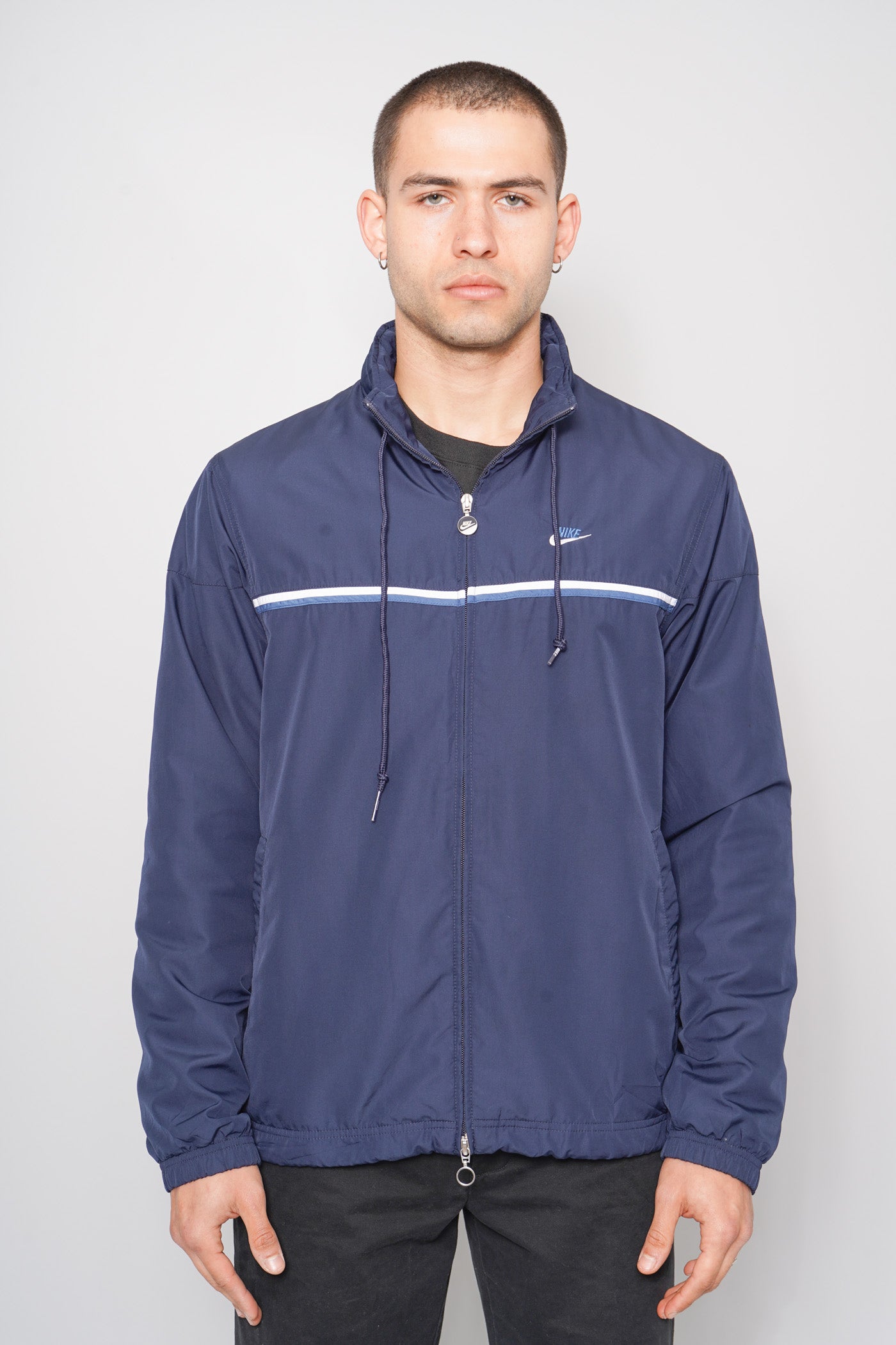 CORTAVIENTO, COLOR AZUL, MARCA NIKE, TALLA L, DE POLIÉSTER, TEMP. OTOÑO-INVIERNO, 58CM (ANCHO DEL PECHO) X 49CM (ANCHO DE HOMBROS) X 70.5CM (LARGO), PRODUCTO CON DESGASTE.
