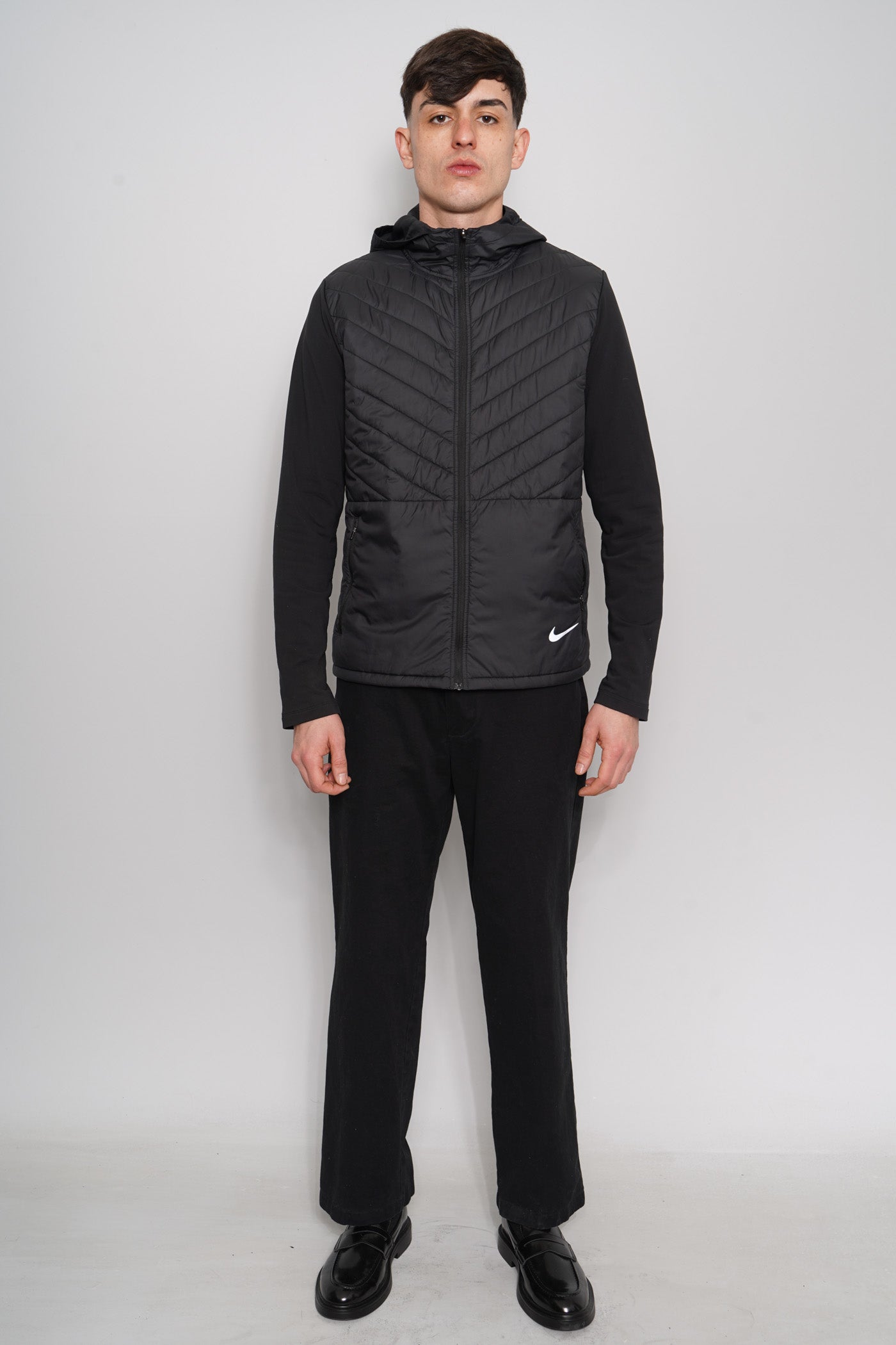 JACKET, COLOR NEGRO, MARCA NIKE, TALLA M, DE POLIÉSTER, TEMP. OTOÑO-INVIERNO, 56CM (ANCHO DEL PECHO) X 44CM (ANCHO DE HOMBROS) X 69.5CM (LARGO), ÓPTIMAS CONDICIONES.