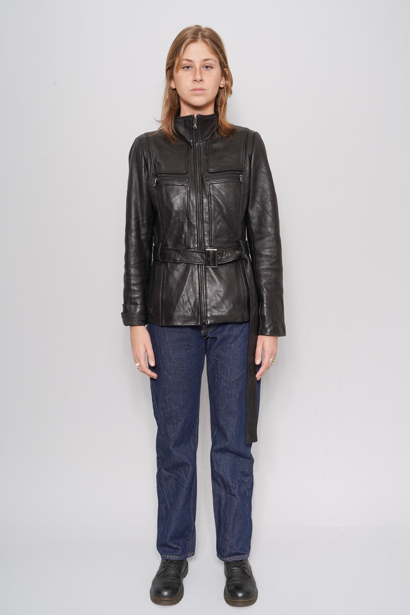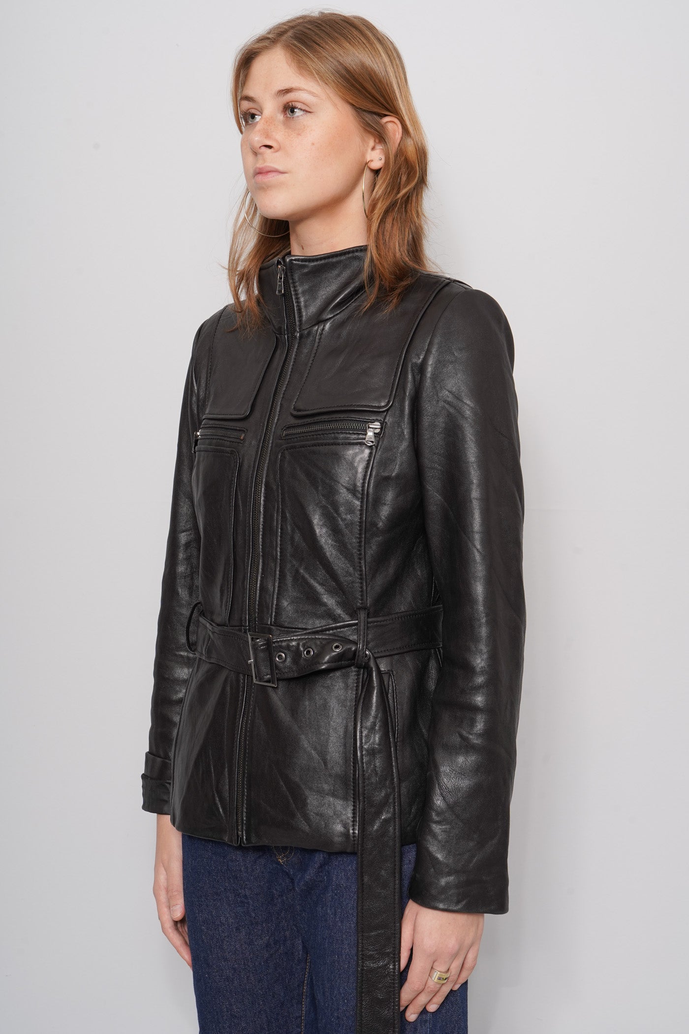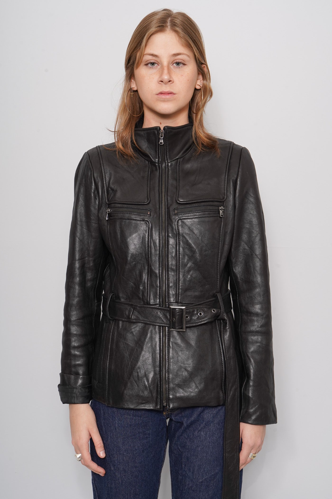 JACKET, COLOR NEGRO, MARCA KENNETH COLE, TALLA M, DE CUERO, TEMP. OTOÑO-INVIERNO, 48CM (ANCHO DEL PECHO) X 40CM (ANCHO DE HOMBROS) X 64CM (LARGO), PRODUCTO CON DESGASTE.