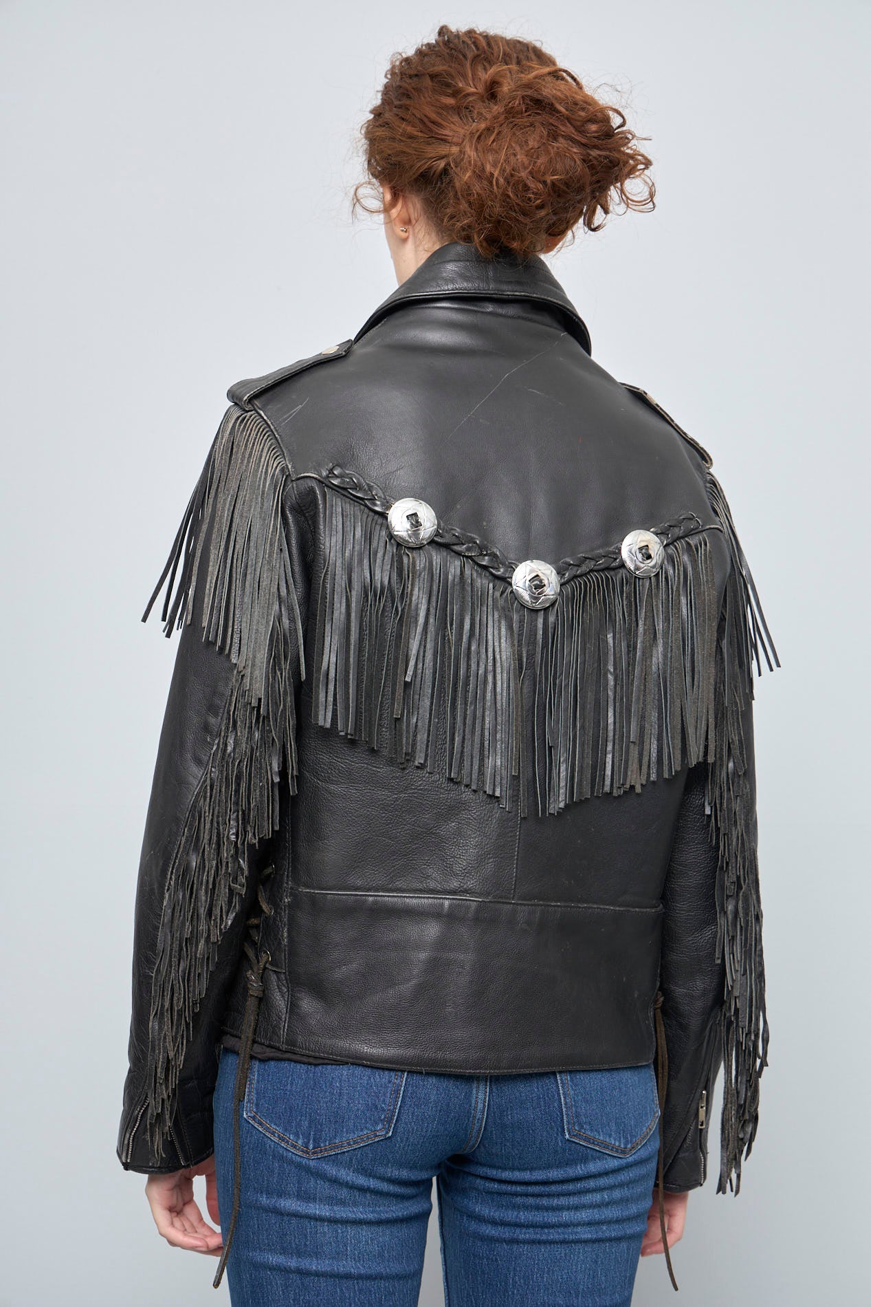 JACKET, COLOR NEGRO, MARCA BIKERS, TALLA 38, DE CUERO, TEMP. OTOÑO-INVIERNO, 59CM (ANCHO DEL PECHO) X 44CM (ANCHO DE HOMBROS) X 60CM (LARGO), PRODUCTO CON DESGASTE.