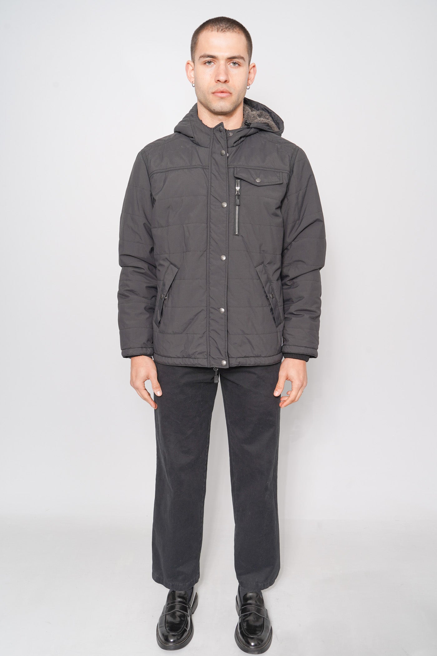 PARKA, COLOR NEGRO, MARCA CARHARTT, TALLA XXL, DE POLIÉSTER, TEMP. OTOÑO-INVIERNO, 55CM (ANCHO DE HOMBROS) X 67CM (ANCHO DEL PRODUCTO) X 67CM (LARGO DEL PRODUCTO), PRODUCTO CON DESGASTE.