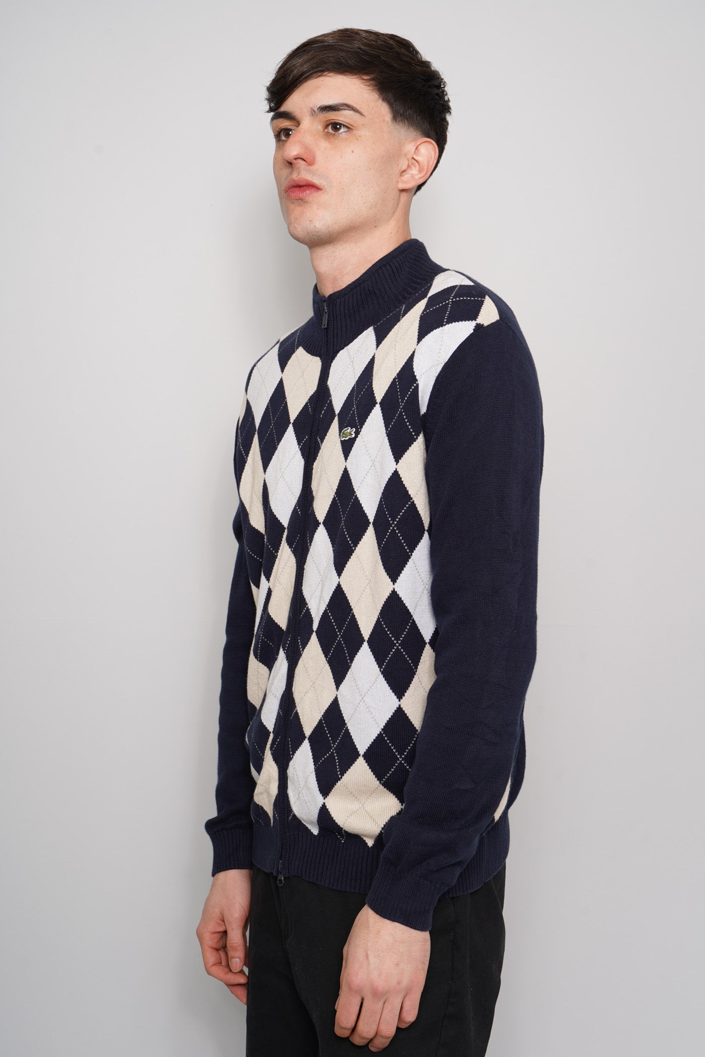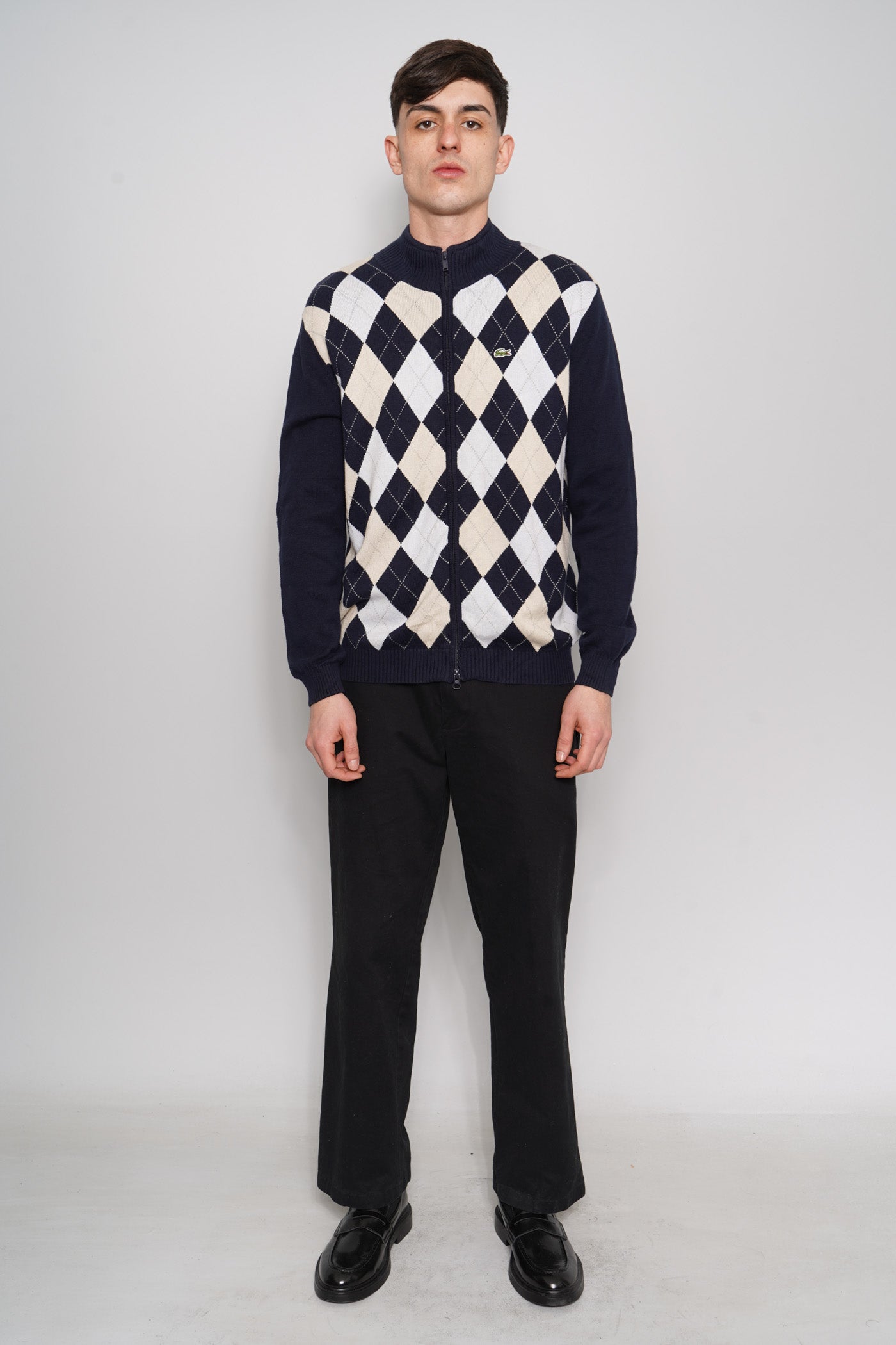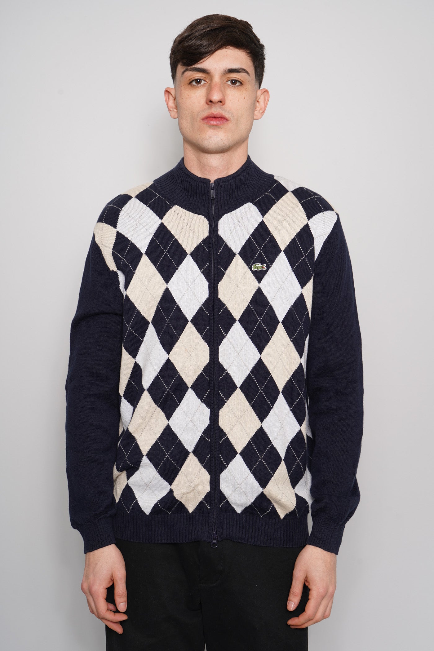 SWEATER, COLOR MULTICOLOR, MARCA LACOSTE, TALLA TU, DE ALGODÓN, TEMP. OTOÑO-INVIERNO, 50.5CM (ANCHO DE HOMBROS) X 57CM (ANCHO DEL PRODUCTO) X 72CM (LARGO DEL PRODUCTO), PRODUCTO CON DESGASTE.