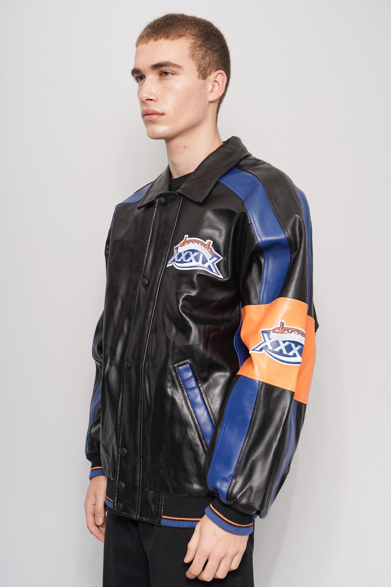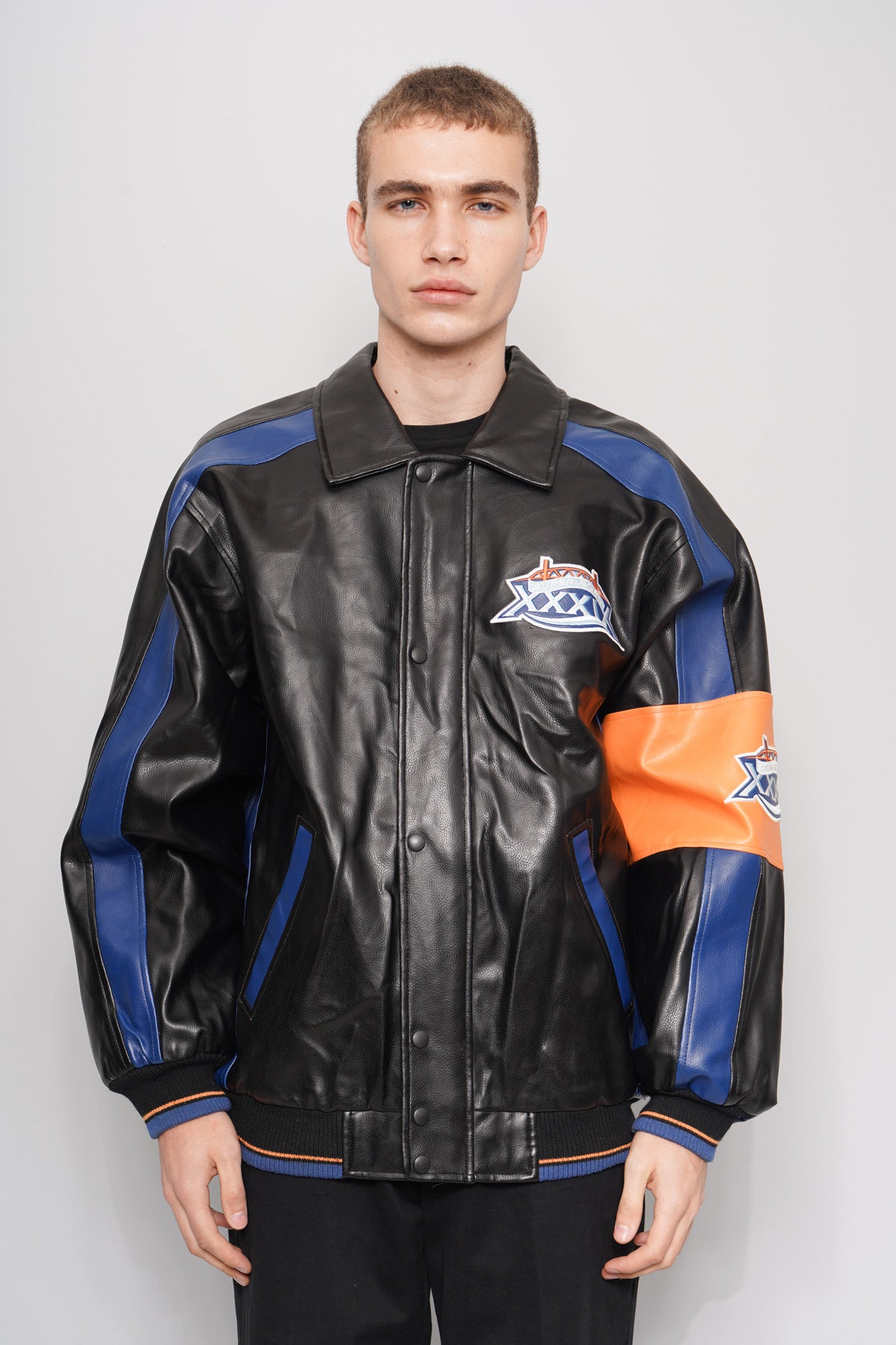 BOMBER, COLOR MULTICOLOR, MARCA NFL, TALLA M, DE PU, TEMP. OTOÑO-INVIERNO, 56CM (ANCHO DE HOMBROS) X 61CM (ANCHO DEL PRODUCTO) X 78CM (LARGO DEL PRODUCTO), ÓPTIMAS CONDICIONES.