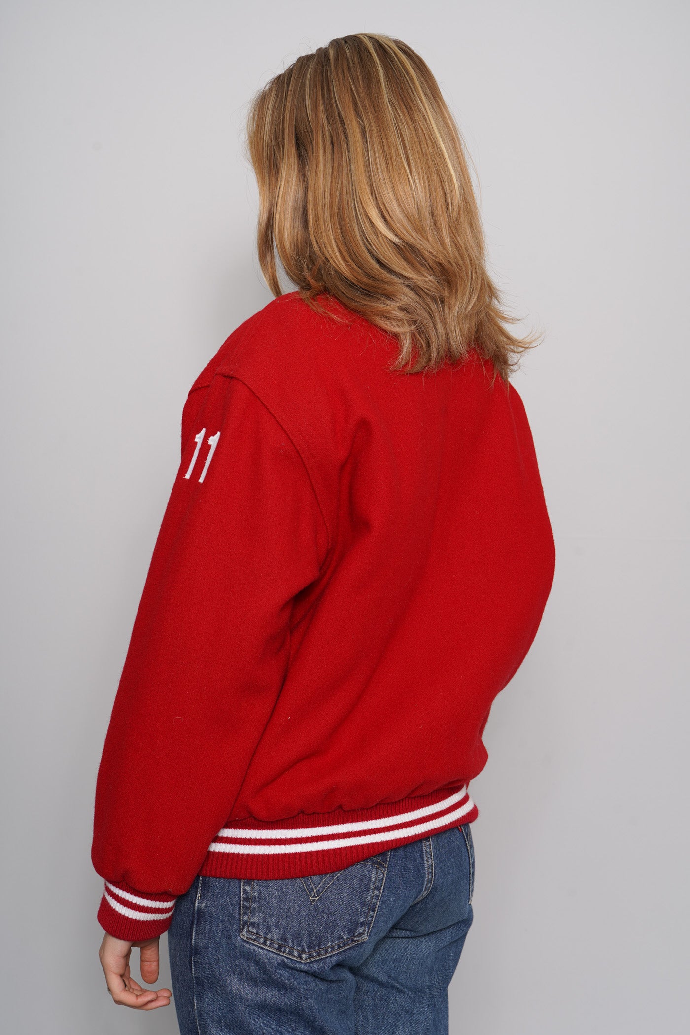 BOMBER, COLOR ROJO, MARCA DAVE FEBBO, TALLA S, DE LANA/POLIÉSTER, TEMP. OTOÑO-INVIERNO, 50CM (ANCHO DE HOMBROS) X 58CM (ANCHO DEL PRODUCTO) X 63CM (LARGO DEL PRODUCTO), PRODUCTO CON DESGASTE.