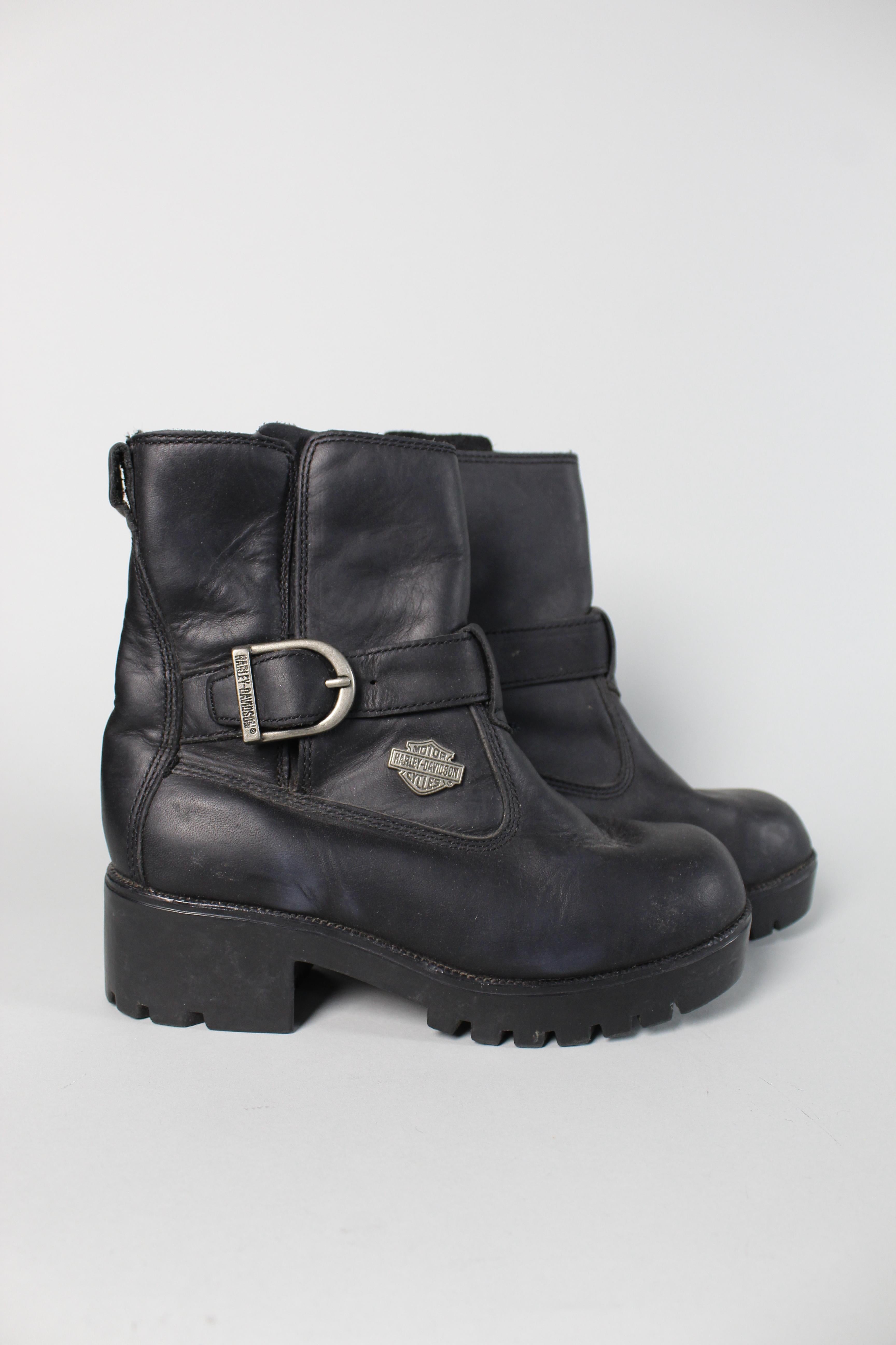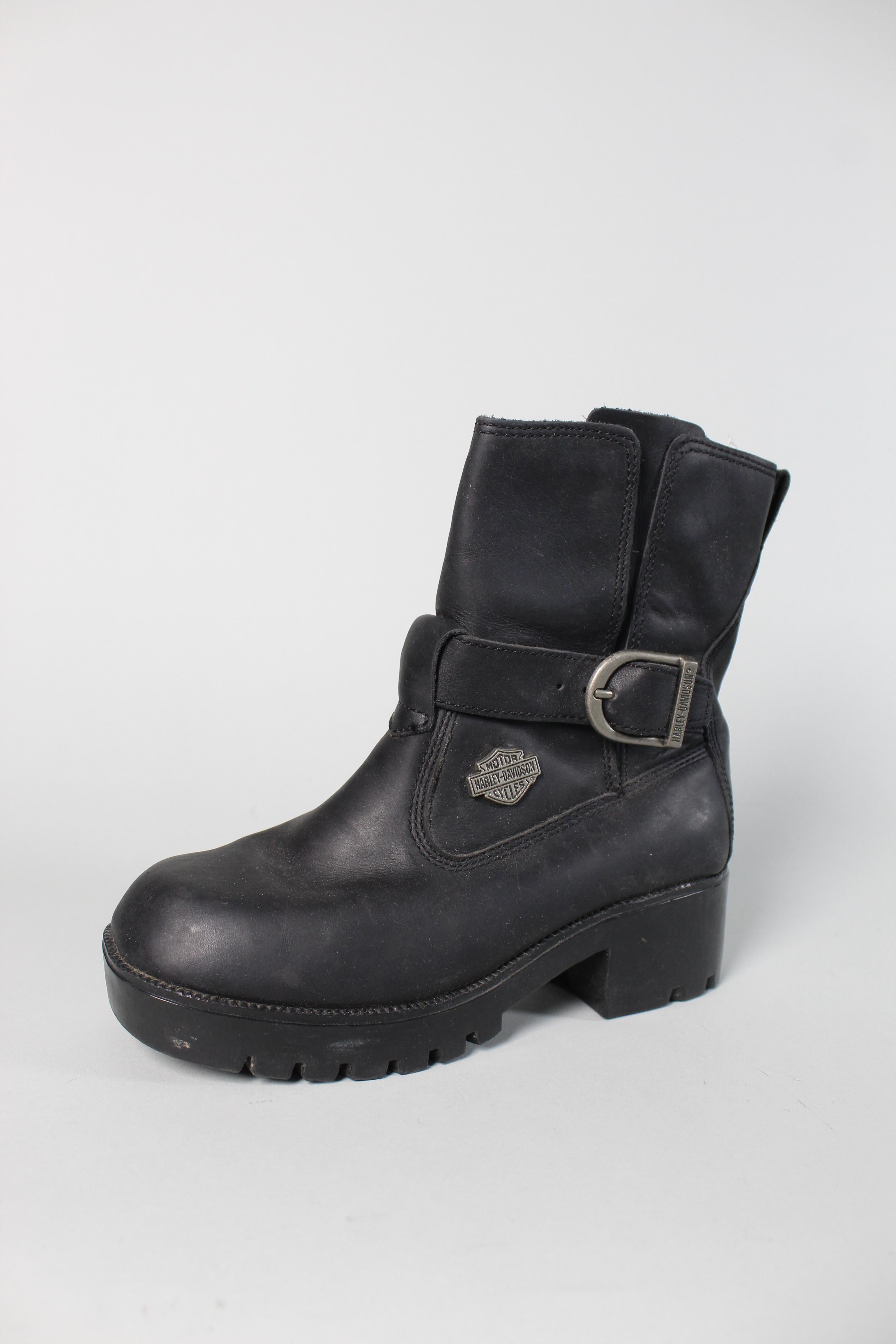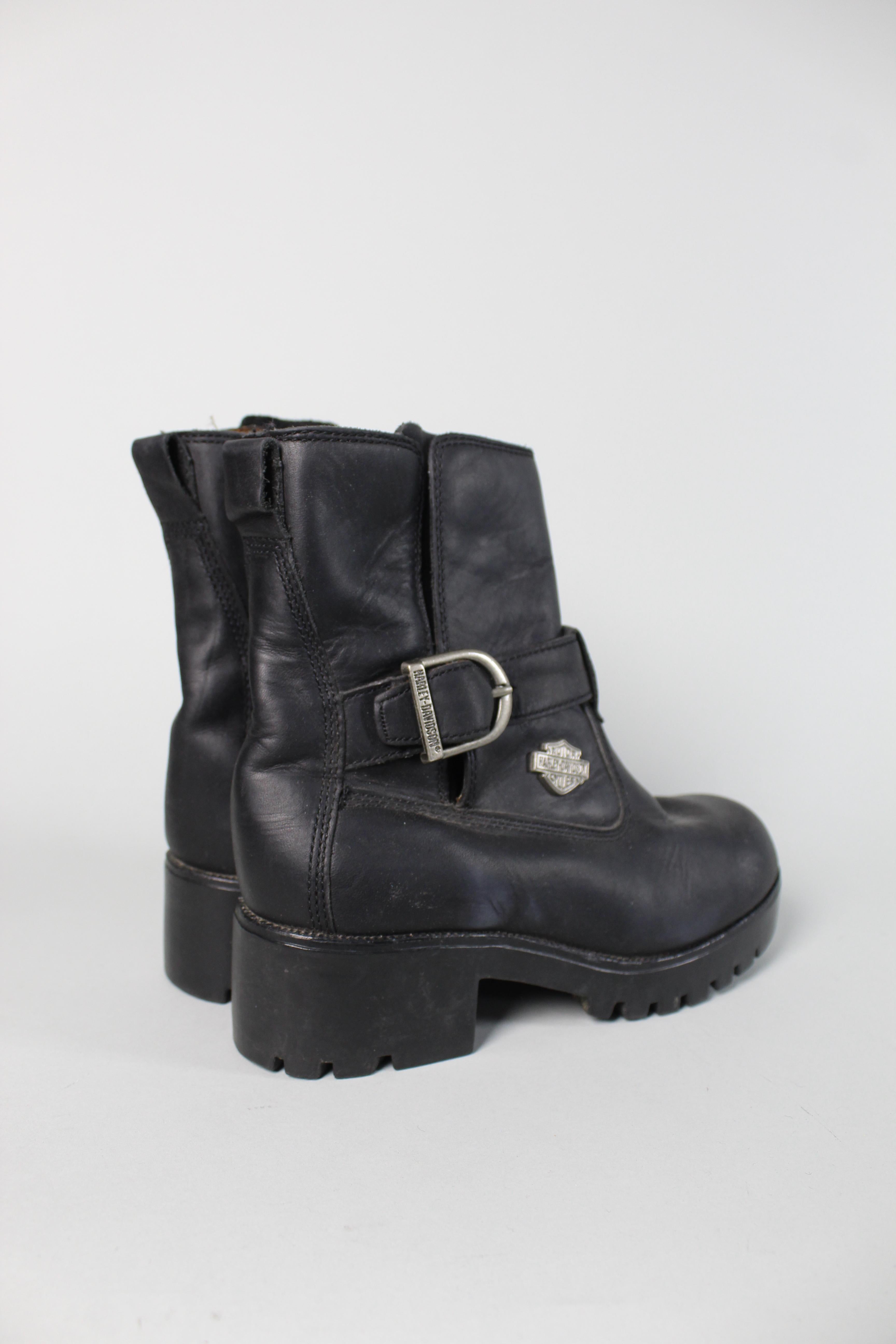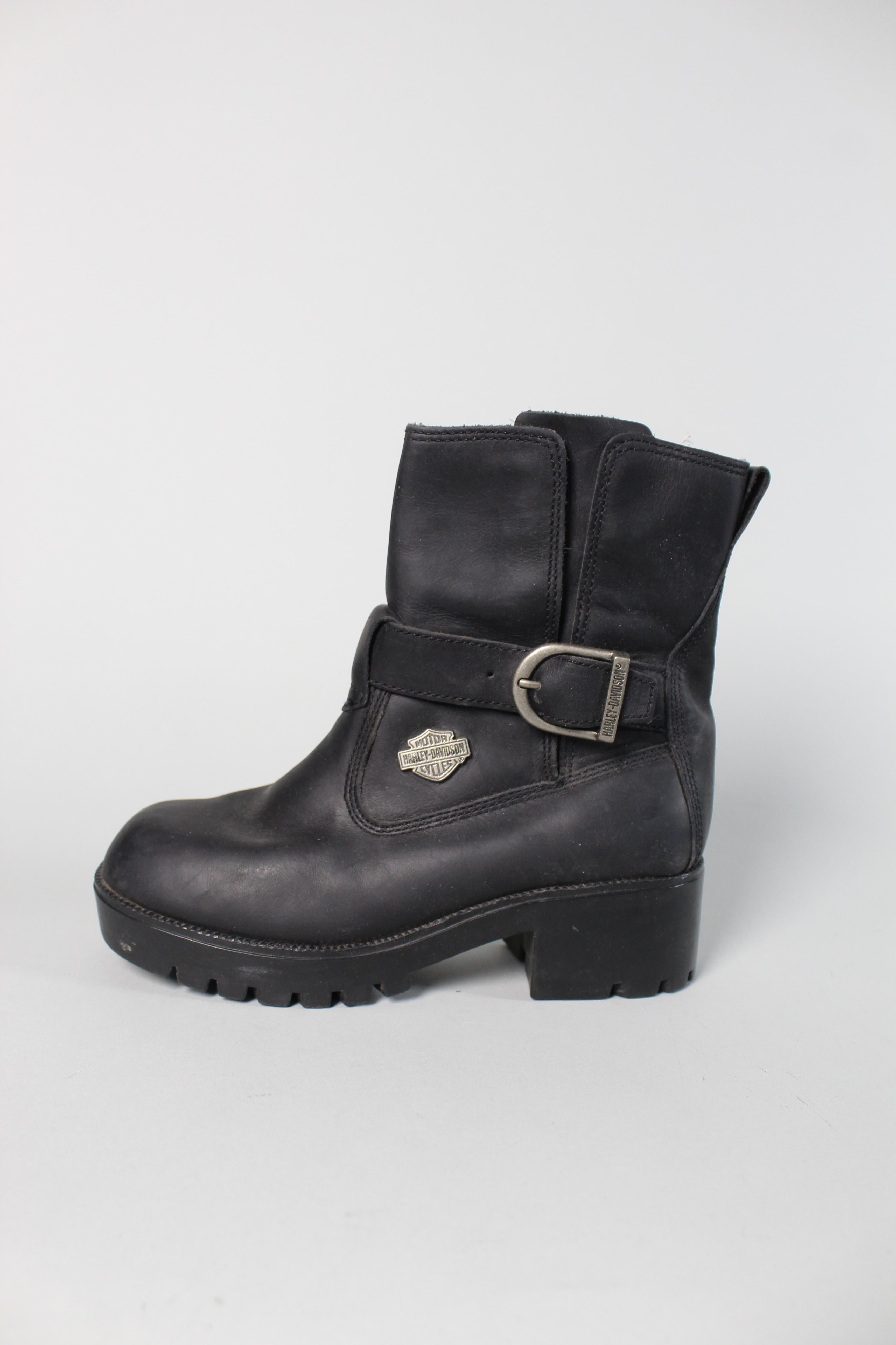BOTA/BOTIN, COLOR NEGRO, MARCA HARLEY DAVIDSON, TALLA 37, DE CUERO, TEMP. OTOÑO-INVIERNO, 23CM (LARGO DEL PRODUCTO), PRODUCTO CON DESGASTE.