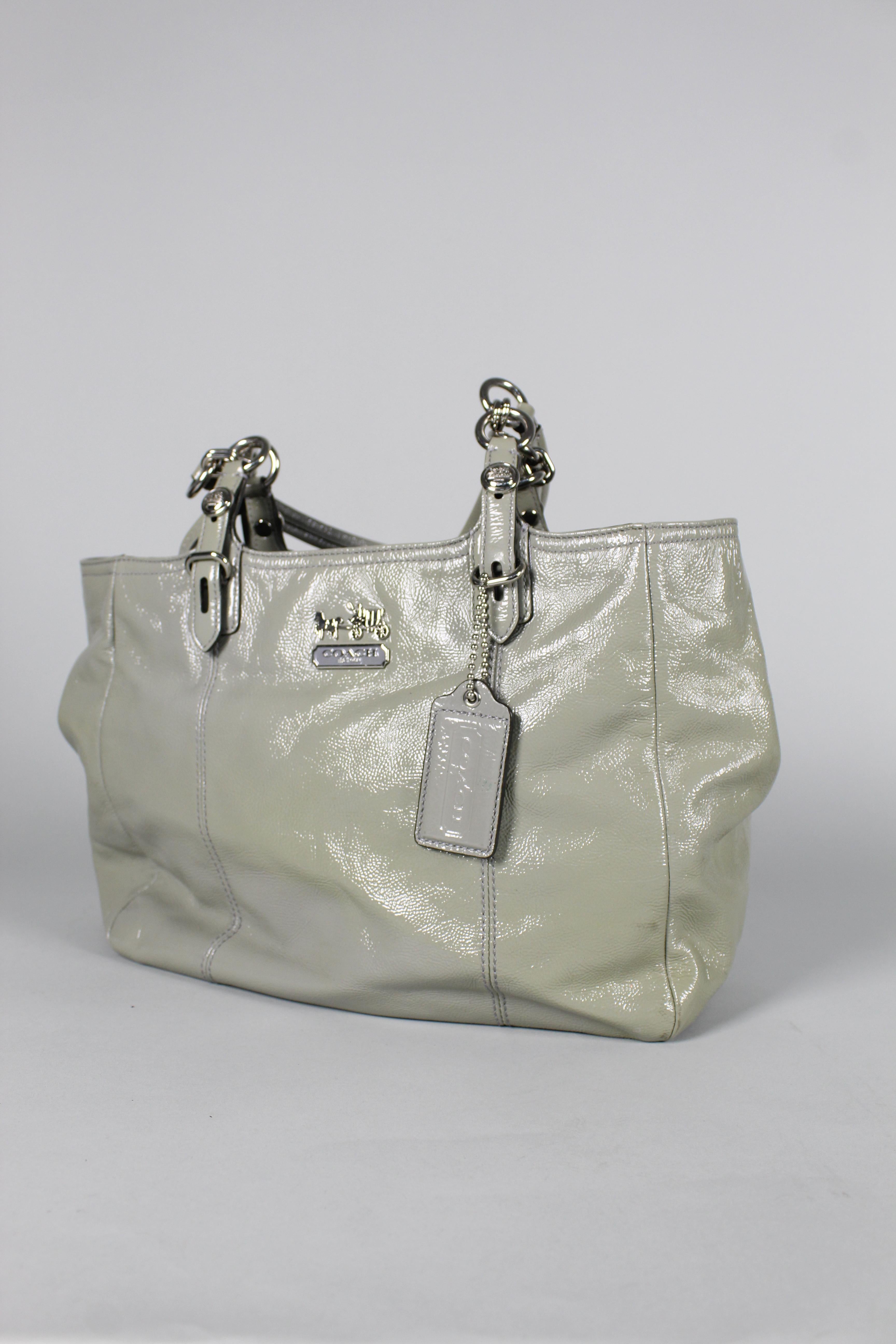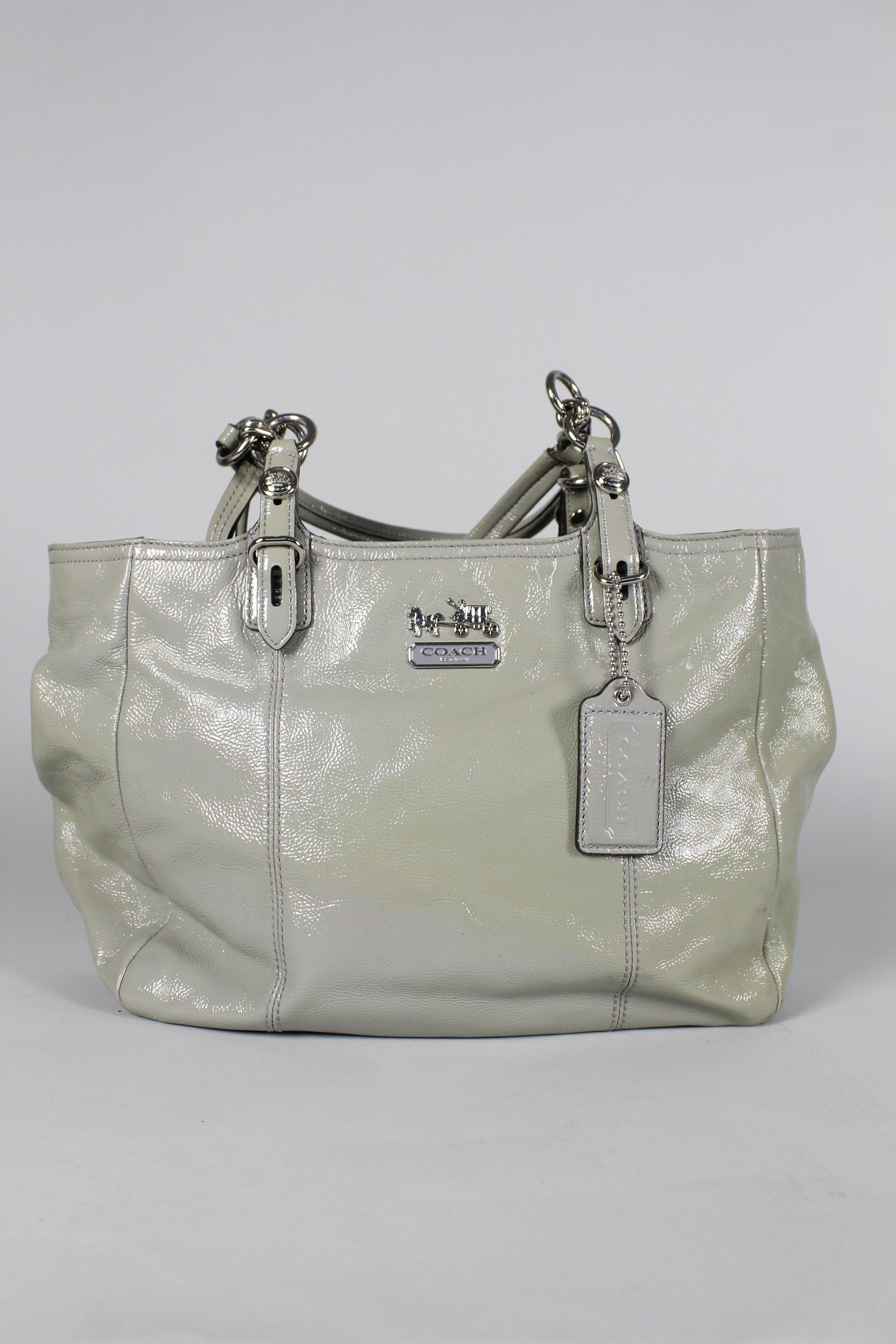 CARTERA/MOCHILA, COLOR GRIS, MARCA COACH, TALLA TU, DE CUERO, TEMP. OTOÑO-INVIERNO, 9CM (profundidad DEL PRODUCTO) X 41CM (ANCHO DEL PRODUCTO) X 26CM (ALTURA DEL PRODUCTO), PRODUCTO CON DESGASTE. tiene mancha amarilla en parte frontal.