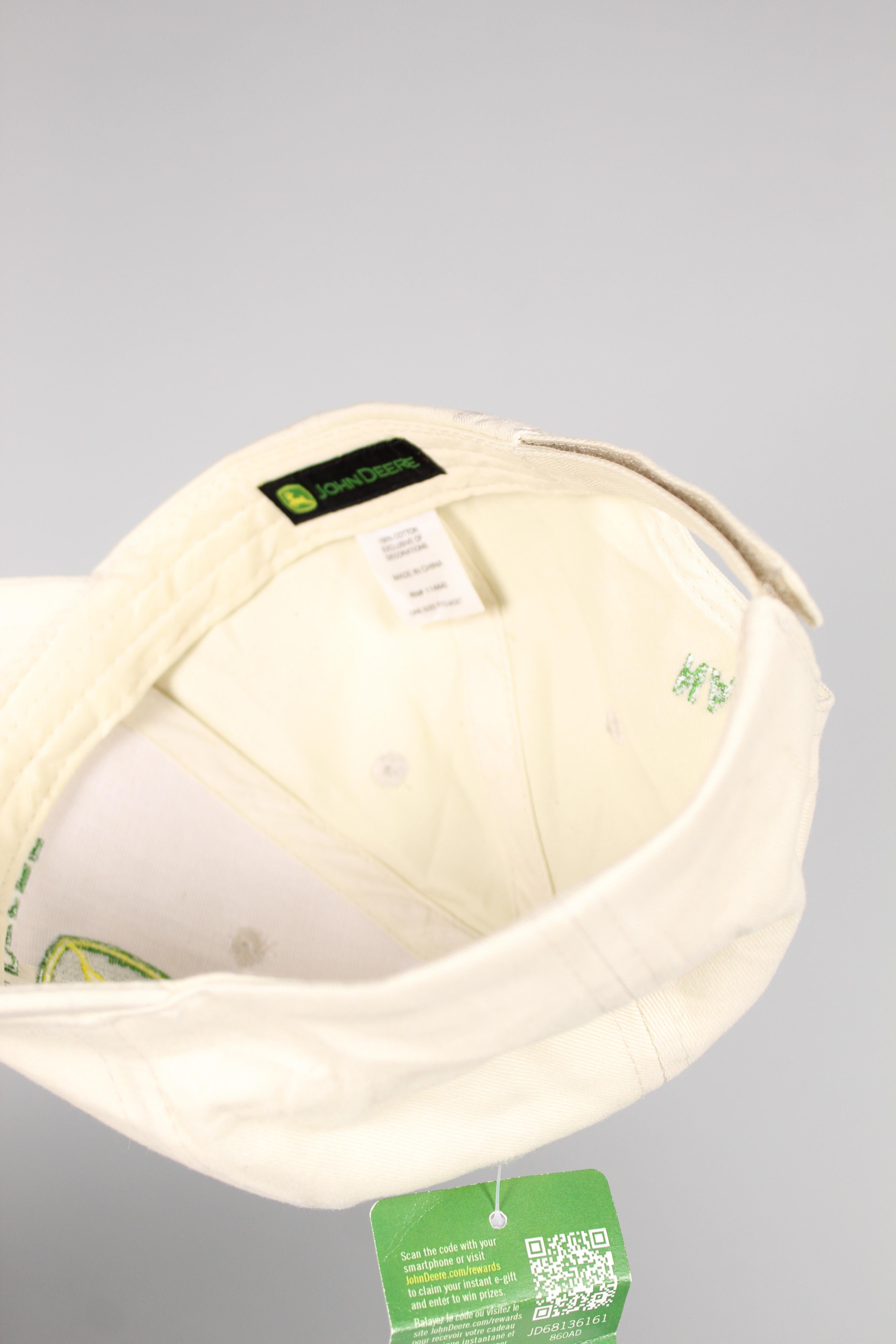 GORRO, COLOR BEIGE, MARCA JOHN DEERE, TALLA TU, DE ALGODÓN, TEMP. OTOÑO-INVIERNO, 62CM (CONTORNO), NUEVO CON ETIQUETA. detalle en visera.