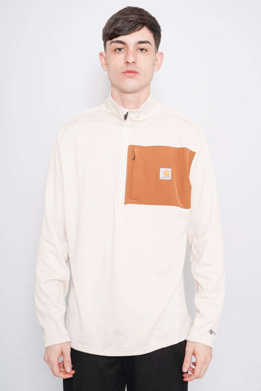POLERA, COLOR BEIGE, MARCA CARHARTT, TALLA L, DE POLIÉSTER, TEMP. PRIMAVERA-VERANO, 46CM (ANCHO DE HOMBROS) X 61CM (ANCHO DEL PRODUCTO) X 75CM (LARGO DEL PRODUCTO), ÓPTIMAS CONDICIONES.
